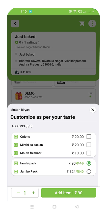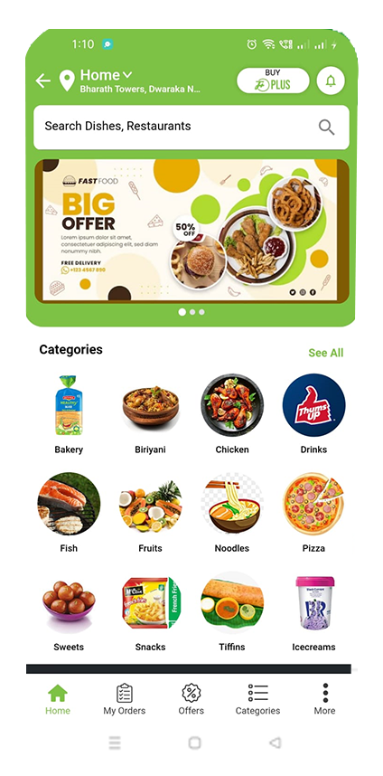 Order food from nearby restaurants and search by cuisine, restaurant name, dish, and meal.